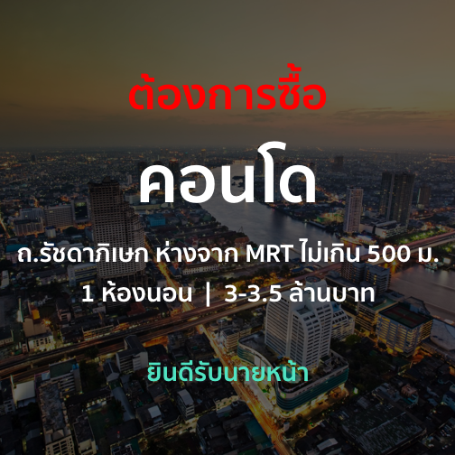 [ต้องการซื้อ] คอนโด ถ.รัชดาภิเษก ช่วง Central พระราม 9 - สี่แยกรัชดาฯ-ลาดพร้าว
