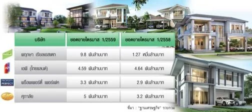 สอดคล้องกับ นายไตรเตชะ ตั้งมติธรรม กรรมการผู้จัดการ บริษัท ศุภาลัย จำกัด (มหาชน) กล่าวว่า ในส่วนของบริษัทคาดว่ายอดขายในไตรมาส 1 จะอยู่ที่ประมาณ 5 พันล้านบาท สูงกว่าเป้าที่ตั้งไว้ ตั้งแต่ต้นปีที่คาดว่าจะมียอดขายในไตรมาส 1/2559 ที่ประมาณ 4 พันล้านบาท โดยยอดขายที่เพิ่มสูงขึ้นส่วนหนึ่งมาจากมาตรการกระตุ้นอสังหาฯของภาครัฐและโครงการแนวราบที่ยังคงมีอัตราการเติบโตอย่างต่อเนื่อง โดยเฉพาะตลาดต่างจังหวัด สำหรับยอดขายในไตรมาส 1/2558 อยู่ที่ 3.2 พันล้านบาท