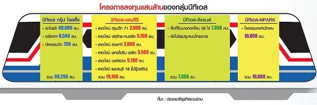 ซึ่งรถไฟฟ้าเตรียมเงินลงทุนกว่า 6 หมื่นล้านบาท เข้าร่วมประมูลรถไฟฟ้าโมโนเรลสายสีชมพู (แคราย-มีนบุรี) และสีเหลือง (ลาดพร้าว-สำโรง) รวมถึงจัดหาระบบและเดินรถไฟฟ้าสายสีเขียวต่อขยาย 2 เส้นทางจากหมอชิต-สะพานใหม่-คูคต และแบริ่ง-สมุทรปราการ จะเป็นโครงข่ายต่อเชื่อมกับรถไฟฟ้าบีทีเอสที่ บมจ.ระบบขนส่งมวลชนกรุงเทพ (BTSC) รับจ้างเดินรถให้กรุงเทพมหานคร (กทม.)