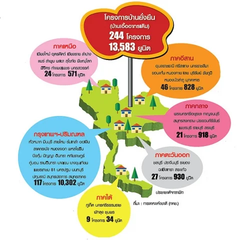ทั้งนี้ โครงการบ้านยั่งยืนเป็นโครงการการพัฒนาที่อยู่อาศัยสำหรับผู้มีรายได้น้อยสร้างเสร็จพร้อมเข้าอยู่ เพื่อลดความเหลื่อมล้ำจำนวนทั้งสิ้น 244 โครงการ 13,583 ยูนิตทั่วประเทศ โดยสต๊อกเหลือขายทั้งหมดมาจากโครงการบ้านเอื้ออาทรเดิมที่ยังขายไม่หมด การเคหะฯนำมาปรับปรุงตัวอาคารใหม่ให้พร้อมเข้าอยู่ รวมทั้งเปลี่ยนชื่อใหม่เป็นโครงการบ้านยั่งยืน ส่วนโครงการใหม่ในอนาคตอาจจะต้องใช้ชื่อใหม่