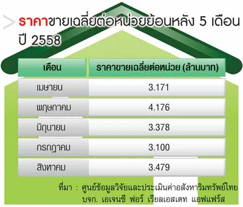 จากการสำรวจตลาดอสังหาริมทรัพย์ ประจำเดือนสิงหาคม 2558 โดยศูนย์ข้อมูลวิจัยและประเมินค่าอสังหาริมทรัพย์ไทย บจก. เอเจนซี ฟอร์ เรียลเอสเตท แอฟแฟร์ส พบว่าอสังหาริมทรัพย์ในเขตกรุงเทพฯ-ปริมณฑลมีการเปิดตัวเพิ่มขึ้น โดยมีจำนวนโครงการเปิดขายใหม่ทั้งหมด 25 โครงการ และเมื่อพิจารณาจำนวนหน่วยขาย มูลค่าและราคาขายเฉลี่ยต่อหน่วยเพิ่มขึ้นด้วย ซึ่งลักษณะการพัฒนาเป็นการพัฒนาในกลุ่มที่อยู่อาศัย 24 โครงการ และโฮมออฟฟิศอีก 1 โครงการ มีจำนวนหน่วยขายรวม 7,674 หน่วย และมีมูลค่าการพัฒนาโครงการรวม 2.67 หมื่นล้านบาท