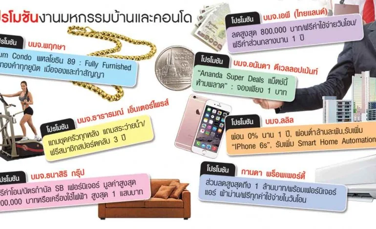 ทั้งนี้ “ฐานเศรษฐกิจ” ได้รวบรวมโปรโมชันจากภายในงาน พบว่า มีโปรโมชันที่น่าสนใจจำนวนมาก อาทิ บริษัท เอพี (ไทยแลนด์) จำกัด (มหาชน) ขน 10 โครงการ พร้อมอยู่และเปิดขายใหม่ มาจัดโปรโมชัน ลดสูงสุด 8 แสนบาท ราคาเริ่ม 1.59 ล้านบาท