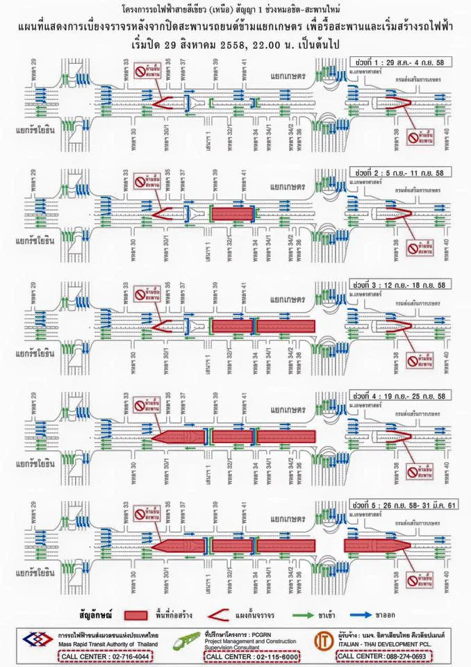 รฟม. แจ้งปิดสะพานข้ามแยกเกษตรเพื่อดำเนินการก่อสร้างโครงการรถไฟฟ้าสายสีเขียว (เหนือ)