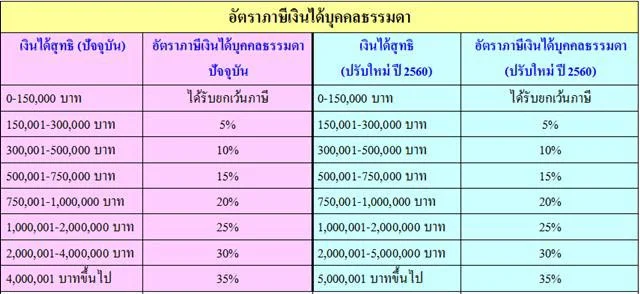ในการประชุมคณะรัฐมนตรีเมื่อวันที่ 19 เมษายน 2559 คณะรัฐมนตรีได้มีมติเห็นชอบตามข้อเสนอของกระทรวงการคลังเกี่ยวกับการปรับปรุงโครงสร้างภาษีเงินได้บุคคลธรรมดา ดังนี้