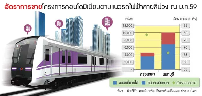 โดยเส้นทางรถไฟฟ้าสายสีม่วง (บางซื่อ-บางใหญ่) มีระยะทางค่อนข้างยาว วัตถุประสงค์เพื่อเชื่อมต่อกรุงเทพฯกับจังหวัดนนทบุรี โดยผ่านแหล่งชุมชน สถานที่ราชการหลายแห่ง ทำให้ตลอดแนวเส้นทางรถไฟฟ้าเป็นที่สนใจของผู้ประกอบการโดยเฉพาะโครงการคอนโดมิเนียม นับตั้งแต่โครงการรถไฟฟ้าเริ่มดำเนินการ ซึ่งในช่วงแรกก็ได้รับการตอบรับเป็นอย่างดีจากลูกค้า จนสามารถปิดการขายไปหลายโครงการ แต่ด้วยความล่าช้าในการก่อสร้าง ขณะที่ผู้ประกอบการก็พัฒนาสินค้าอย่างต่อเนื่อง ส่งผลให้มีโครงการคอนโดฯ เกิดขึ้นจำนวนมาก จนก่อให้เกิดภาวะโอเวอร์ซัพพลาย แต่เชื่อว่าเมื่อรถไฟฟ้าเปิดให้บริการอย่างเป็นทางการ สินค้าเหล่านั้นก็จะถูกดูดซับออกไป