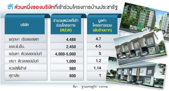เอกชนเห็นพ้องโครงการบ้านประชารัฐ ช่วยกระตุ้นตลาดอสังหาฯไตรมาส 2/59 คึก บรรดาดีเวลอปเปอร์เร่งขนสต๊อกร่วมชิงแชร์ เล็งหากกระแสดีเตรียมพร้อมเดินหน้าพัฒนาโครงการต่อเนื่อง 2 บิ๊กอสังหาฯ ยกขบวนสินค้าร่วมโครงการมูลค่ารวมเฉียด 1 หมื่นล้าน แอล.พี.เอ็น คาดรายได้ครึ่งปีโต 100% พฤกษา แย้มหากสินค้ากลุ่มทาวน์เฮาส์ขายดีมีแผนสร้างเพิ่มแน่นอนอย่างน้อย 1,000 หลังต่อเดือน ออริจิ้น เผยมีลูกค้าให้ความสนใจสอบถามอย่างต่อเนื่อง