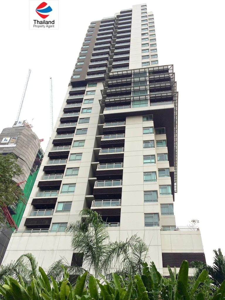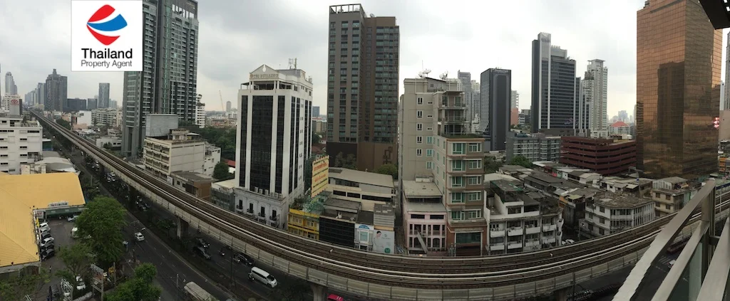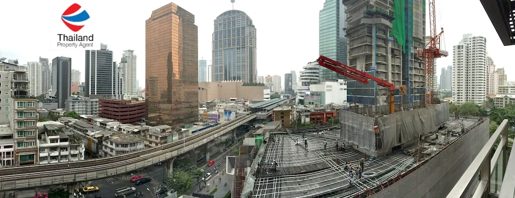ในอีกด้านหนึ่งของอาคาร เราสามารถเห็นสถานีรถไฟฟ้าพร้อมพงษ์ที่อยู่ใกล้มากได้ ในรูปจะเห็นว่ามีโครงการคอนโดมิเนียมอีกโครงการกำลังอยู่ในระหว่างก่อสร้าง